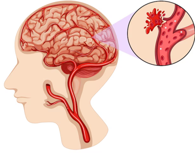 Stroke: A disease in which a blood vessel in the brain ruptures and blood leaks into the brain tissue, causing damage to brain cells.